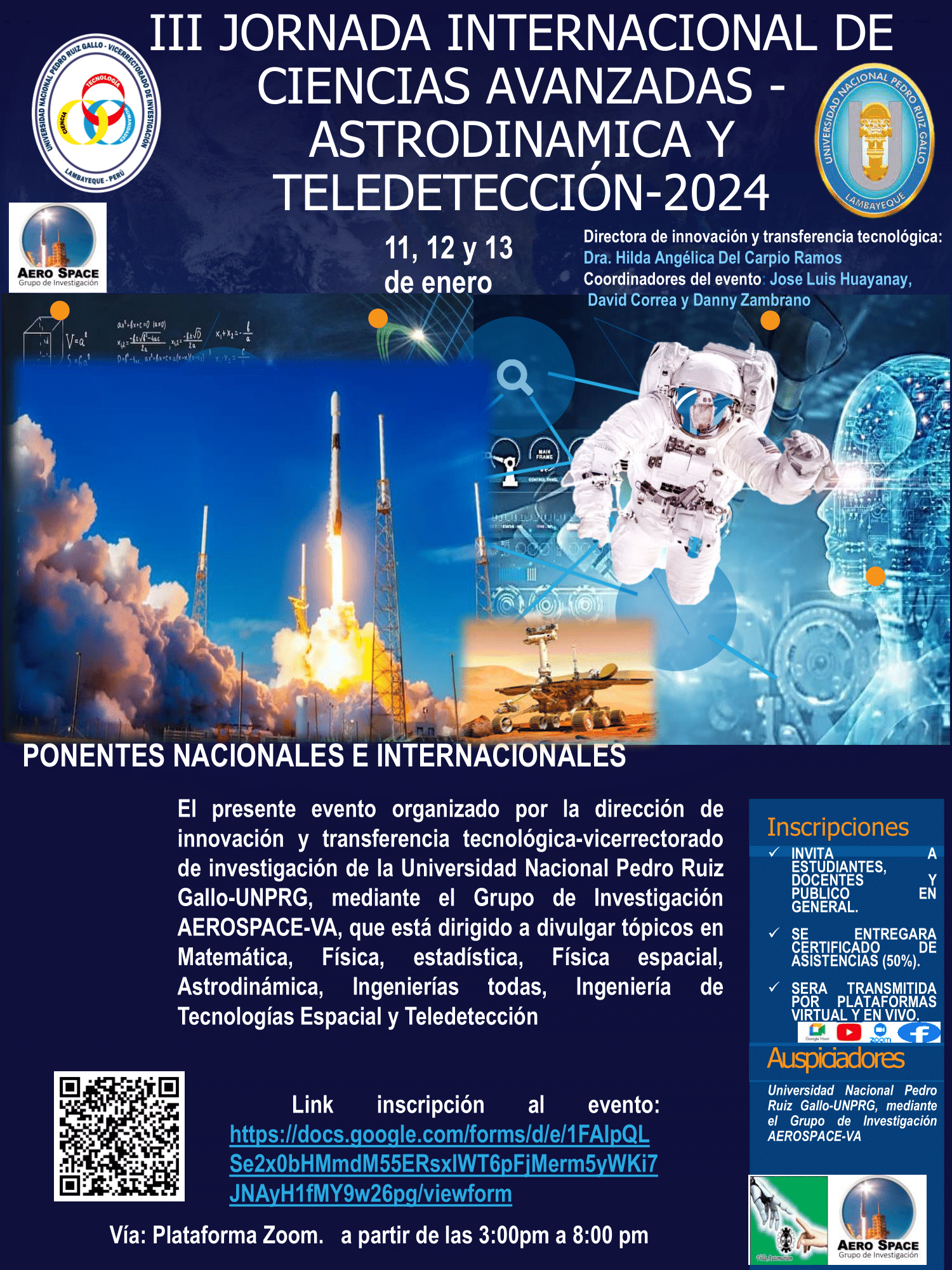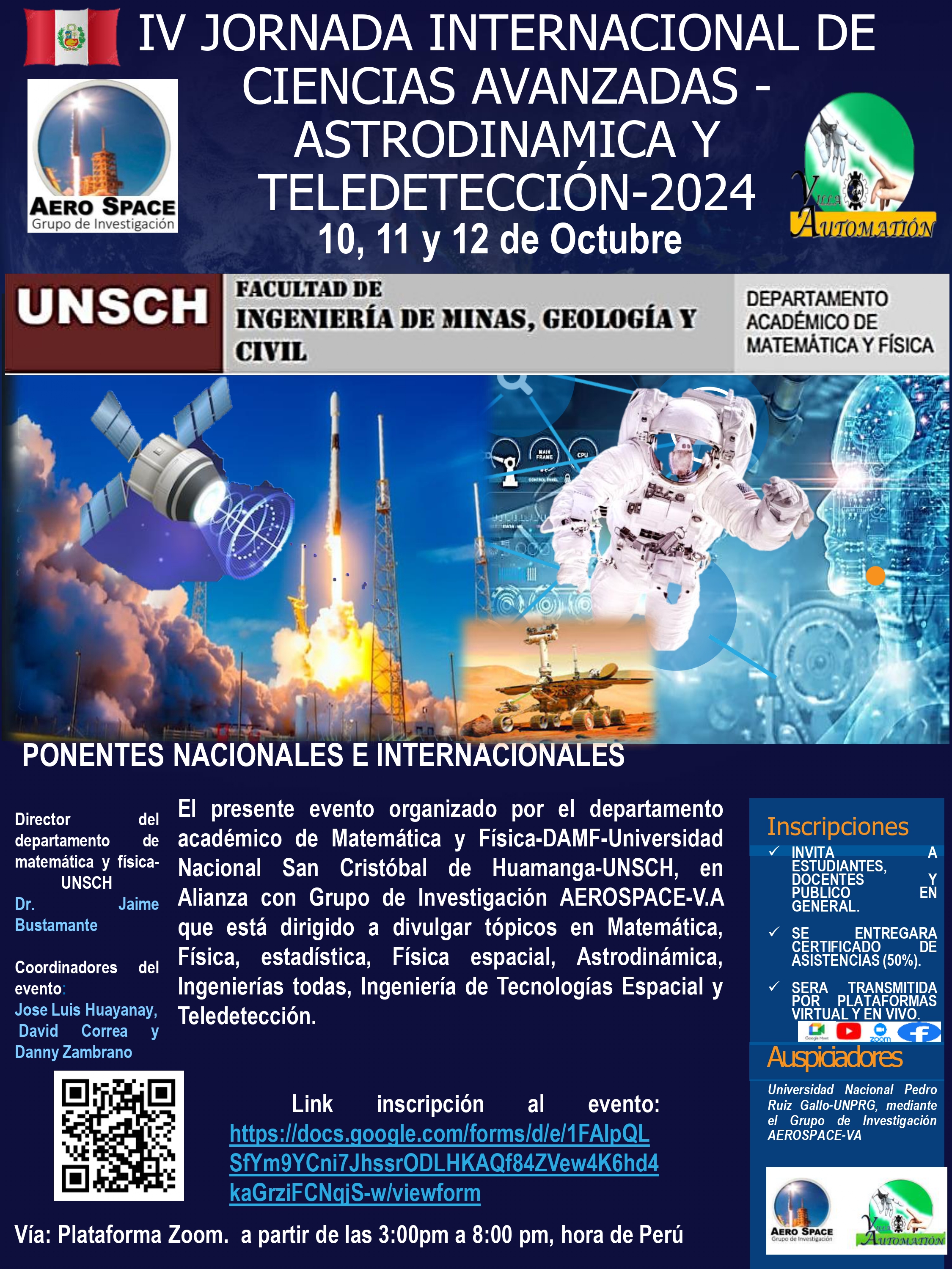 En Jornada Internacional de Ciencias Avanzadas Astrodinámica y Teledetección JICAAT - Impulsamos conferencias científicas y tecnológicas de alto nivel, conectando investigación, industria e innovación a nivel global.
